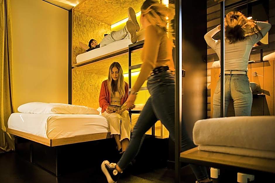 This bunk bed faces either the wall or the window offering guest more privacy. Each bed comes with a locker, night light, socket, USB connection and a night table. It has access to a bathroom with shower.